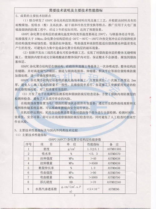 2012年度煙囪防腐科技成果證書(shū)